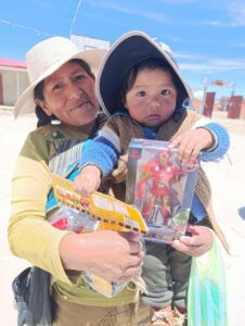 Für die Kinder und Jugendlichen, die aus sehr armen Familien stammen oder ganz auf sich allein gestellt sind, eine riesengroße Freude. Unsere Weihnachtshelfer verteilten allein am Dienstag ca. 200 Geschenke im Kinderhort von Alpacoma, in der Schule Corea del Sur am Stadtrand in dem Dorf Tilata, an Treffpunkten auf der Straße sowie an bestimmten Punkten in La Paz und El Alto.